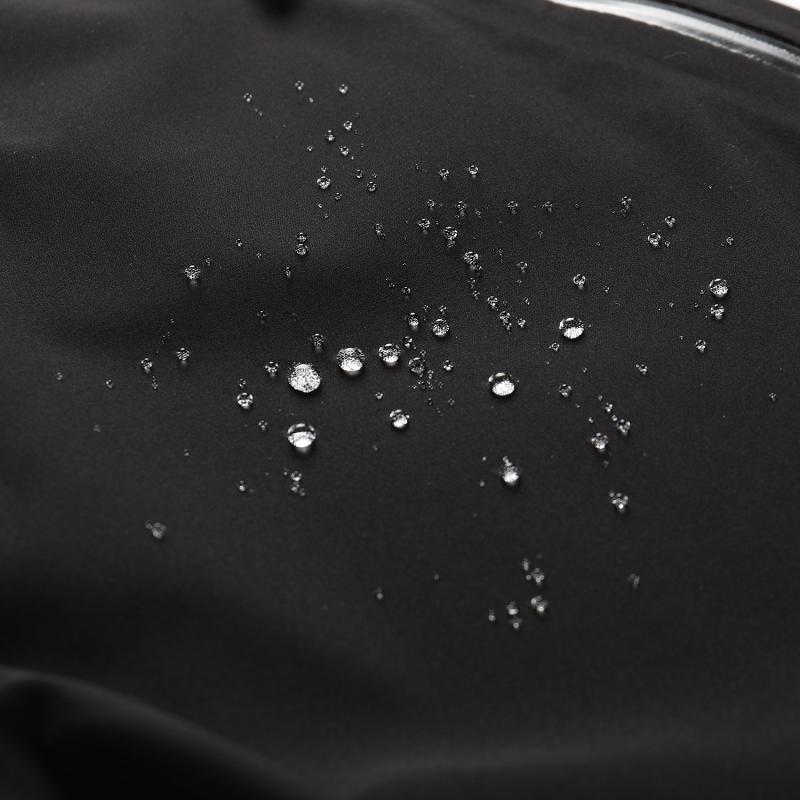 Materiál je opatrený špeciálnou vodoodpudivou vrstvou, ktorá spôsobuje, že voda a sneh vytvárajú drobné kvapôčky a okamžite stekajú z povrchu. Vďaka tejto úprave zostáva oblečenie dlhšie suché aj pri nepriaznivom počasí.