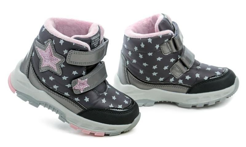 Barva šedá s růžovými detaily je neutrální a zároveň atraktivní pro dívky, které hledají praktickou i stylovou obuv na zimu.