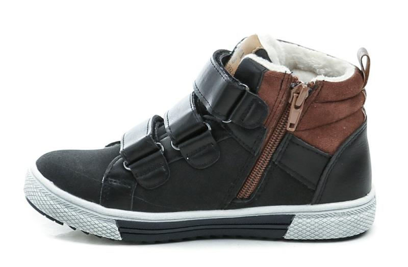 Dětské zimní boty s kombinací zipu a suchého zipu pro snadné obouvání, s teplou textilní podšívkou a odolným syntetickým svrškem vhodné pro běžné nošení.