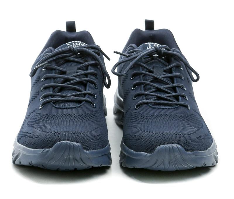 Ľahké modré tenisky s pamäťovou penou v stielke ponúkajú pohodlie a vhodnosť na celoročné nosenie pri športe i prechádzkach.