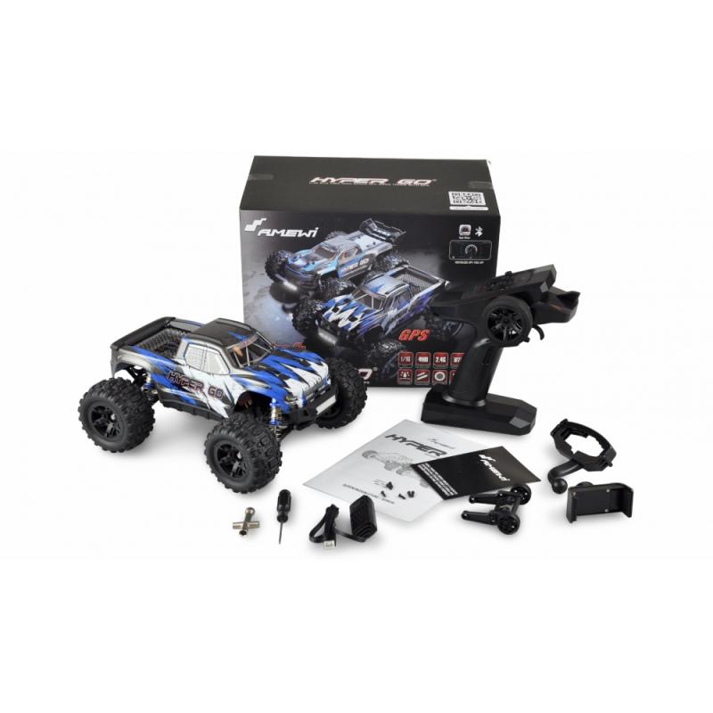 AMEWI Hyper Go Monster Truck s GPS 4WD 1:16 RTR. brushed, LED, modrý + sleva 400,- na příslušenství