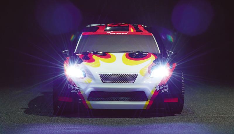 Ovládanie prebieha cez spoľahlivý 2,4 GHz vysielač, ktorý zabezpečuje presnú reakciu vozidla na povely vodiča. Výkonné servo riadenie a integrovaný gyroskop pomáhajú udržať stabilitu a presnosť pri jazde, čo ocenia aj menej skúsení používatelia. Model je vybavený LED osvetlením, ktoré je možné nastaviť v troch rôznych režimoch, čím sa zvyšuje vizuálna atraktivita počas jazdy.