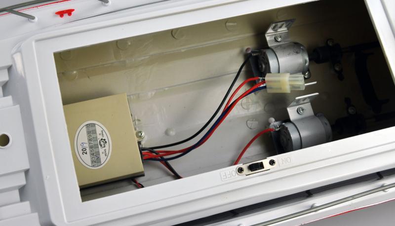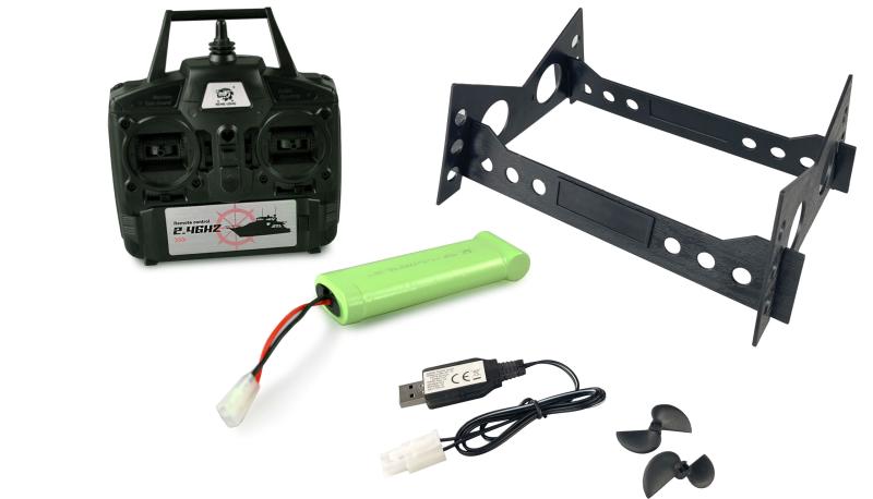 Model je vybavený NiMH batériou s kapacitou 2000 mAh, ktorá umožňuje prevádzku počas 12 až 15 minút v závislosti od štýlu jazdy. Nabíjanie batérie prebieha cez priložený USB kábel a trvá približne 10 hodín. Súčasťou balenia je diaľkové ovládanie pracujúce na frekvencii 2,4 GHz, ktoré ponúka 83 kanálov a dosah až 80 metrov. Ovládanie je dvojkanálové a veľmi intuitívne, loď sa riadi pomocou páčkového vysielača bez nutnosti zložitého nastavovania.
