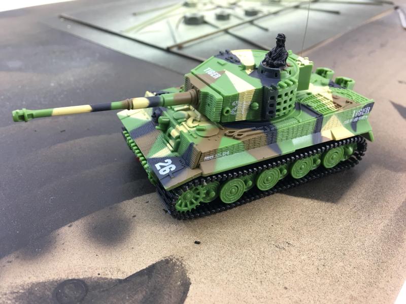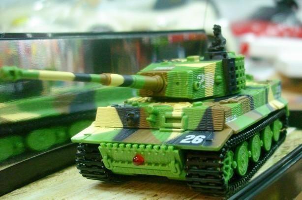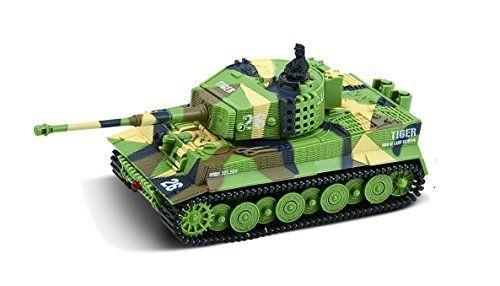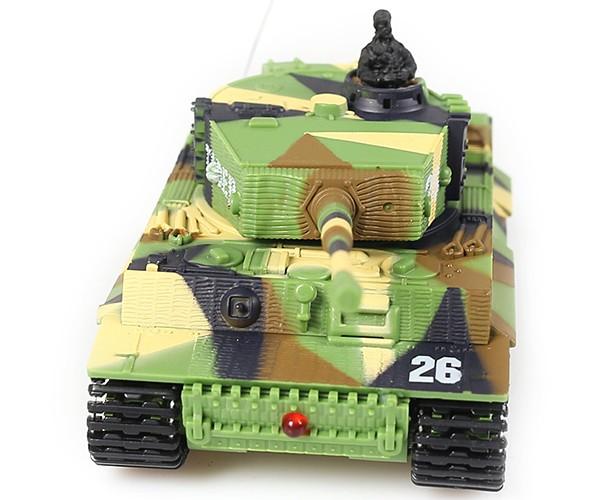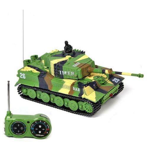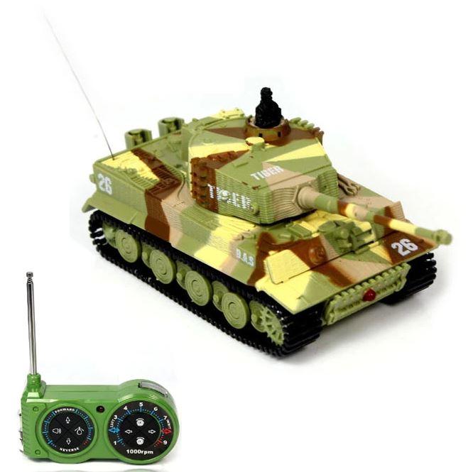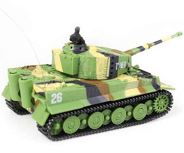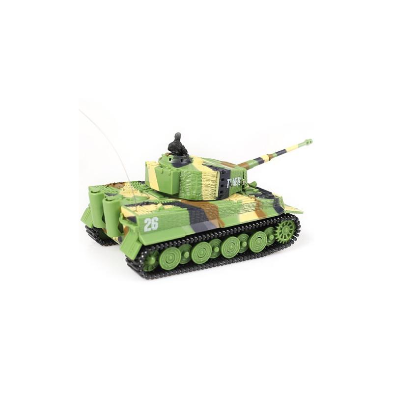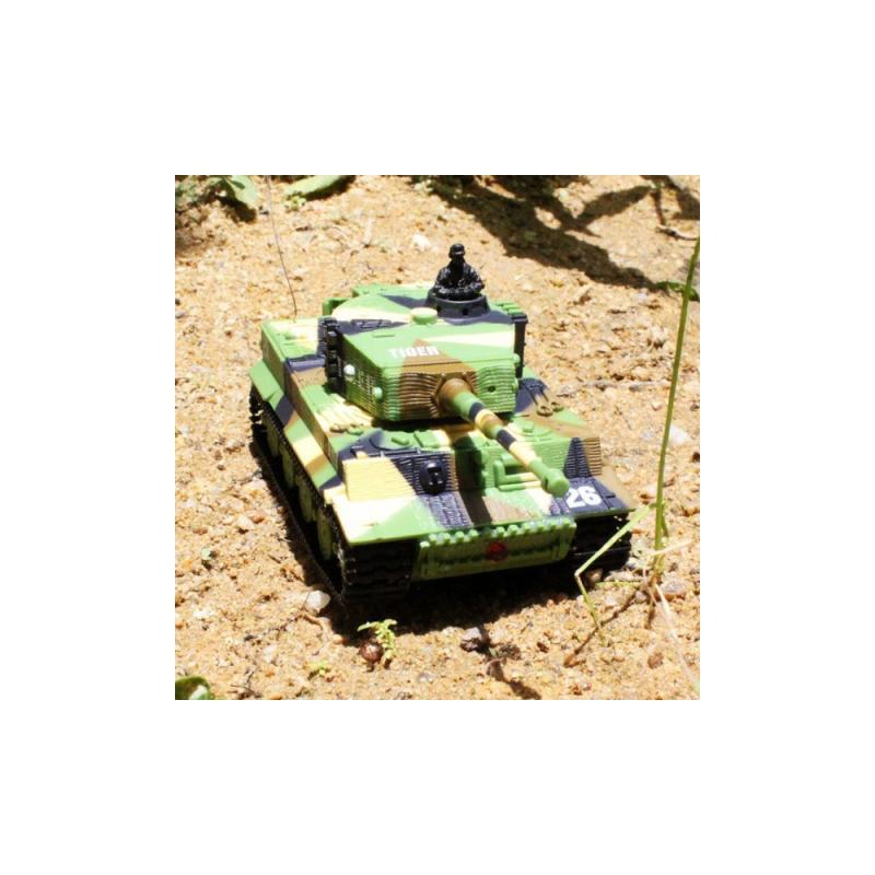 Replika německého tanku German Tiger s otáčením hlavně, zvuk motoru při jízdě, zvukové efekty při střelbě. I přes svou malou velikost ,(délka bez hlavně cca 8,5 cm, výška cca 4 cm) je tento model německého tanku Tiger velmi výkonný a rychlý, jezdí všemi směry. Má pružné a odolné pásy, otočnou věž, zvukové efekty (nastartování, běh motoru, rachocení pásů při jízdě, zvuk otáčení věže, výstřel z děla). Na vysílači lze přepínat mezi pomalou a rychlou jízdou. Tank se nabíjí z baterií vysílače, přes kabel vedoucí z dálkového ovládání.