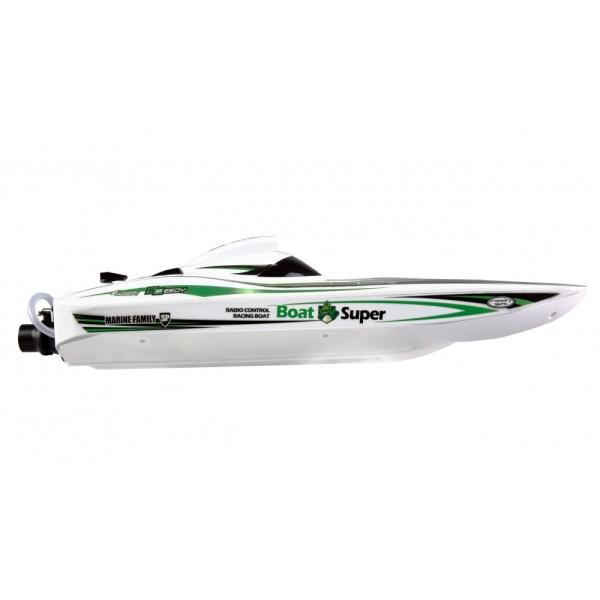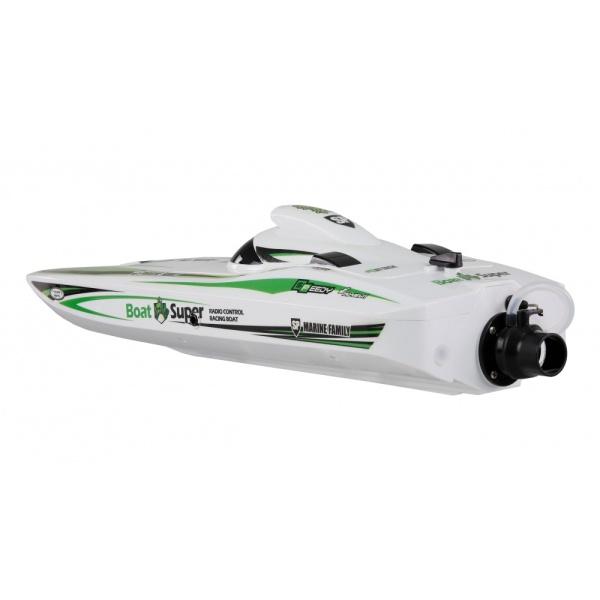 RTR loď na dálkové ovládání ArrowPřipravte se na vzrušující zážitek s RC katamaránem Arrow, závodním člunem třídy offshore, který vám přinese nejenom adrenalinové zážitky, ale i obdiv okolí. Tento člun o délce 400 mm je schopen dosáhnout rychlosti až 30 km/h a zvládá skvěle jakoukoliv vodní plochu. Ať už jste na zatopených loukách nebo jezerech, Arrow se ničeho nezalekne. Výkonný model na všechny vodní hladinyModel překoná rychlost 30 km/h díky pokročilému tryskovému pohonu, který nasává vodu přímo zpod lodi a zajišťuje vynikající tah a rychlou akceleraci. Vysoce odolný trup z ABS plastu a voděodolné komponenty umožňují použití na různorodých vodních plochách bez rizika poškození. Rychloupínací kryt a trup vybavený ochranou proti vodě zaručují jednoduchou výměnu baterie a vysokou odolnost. Ovládání vektoru tahu umožňuje precizní manévry a výjimečnou obratnost i v těch nejtěsnějších prostorách. Díky vodnímu chlazení motoru a regulátoru otáček spolu s odolným 2,4 GHz vysílačem můžete RC katamarán Arrow používat v jakémkoli prostředí bez obav z poškození.RTR katamarán s dobou jízdy až 12 minutAkumulátor Li-Ion 11.1 V 2000 mAh umožňuje 10-12 minut jízdy na vodní hladině. Baterii nabijete pomocí USB nabíječky za 60-90 minut. Dálkové 2kanálové ovládání funguje na frekvenci 2,4 GHz a jeho dosah je 80-100 m. Model RTR je kompletně sestavený s ovladačem, baterií a nabíjecím kabelem, takže ihned po vybalení můžete vyrazit na vodu. Ke zprovoznění budete potřebovat pouze 4 x AA baterie do ovladače.Dodáváme také v modré barvě. Obsah balení: RC katamarán Arrow - zelený Dálkové ovládání Baterie Li-Ion 3S 11.1 V 2000 mAh 15C Nabíjecí USB kabel Sada nářadí Technické parametry: Délka: 40 Šířka: 13 Výška : 10 Rychlost: 30 Výdrž: 12 Kapacita akumulátoru: 2000 Napětí akumulátoru: 11.1 Typ akumulátoru: Li-ion Typ nabíječky: USB Výměnný akumulátor: ano Napájení ovladače: 4xAA Vodou chlazený motor: ano Barva: Zelená Dosah: 100