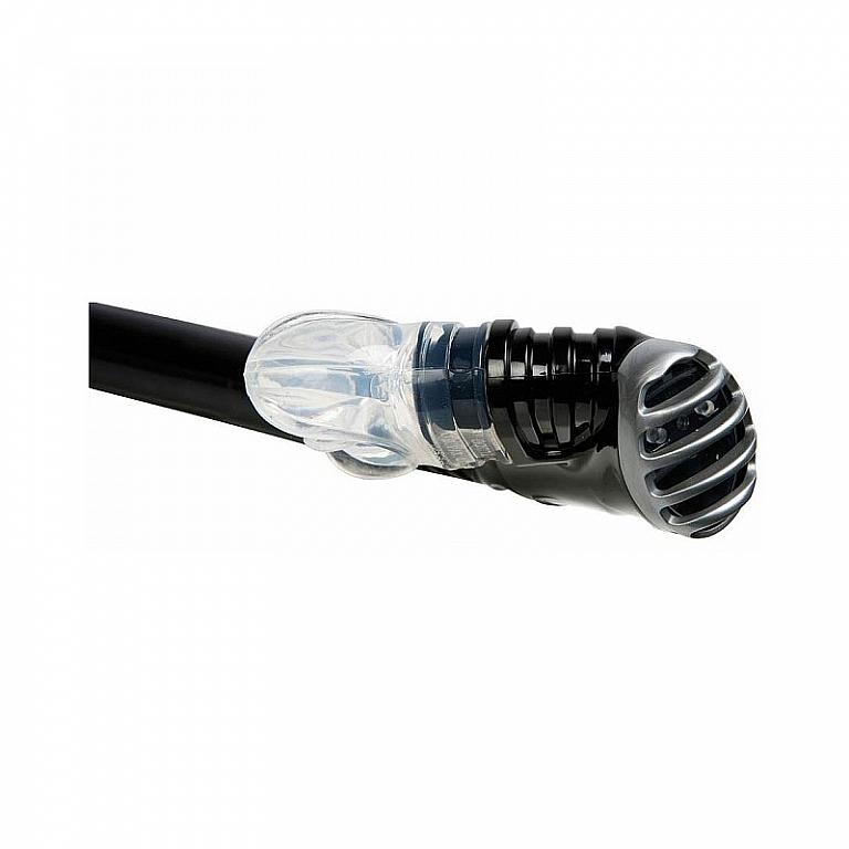 Šnorchl z transparentního nebo černého silikonu s otočným náustkem.