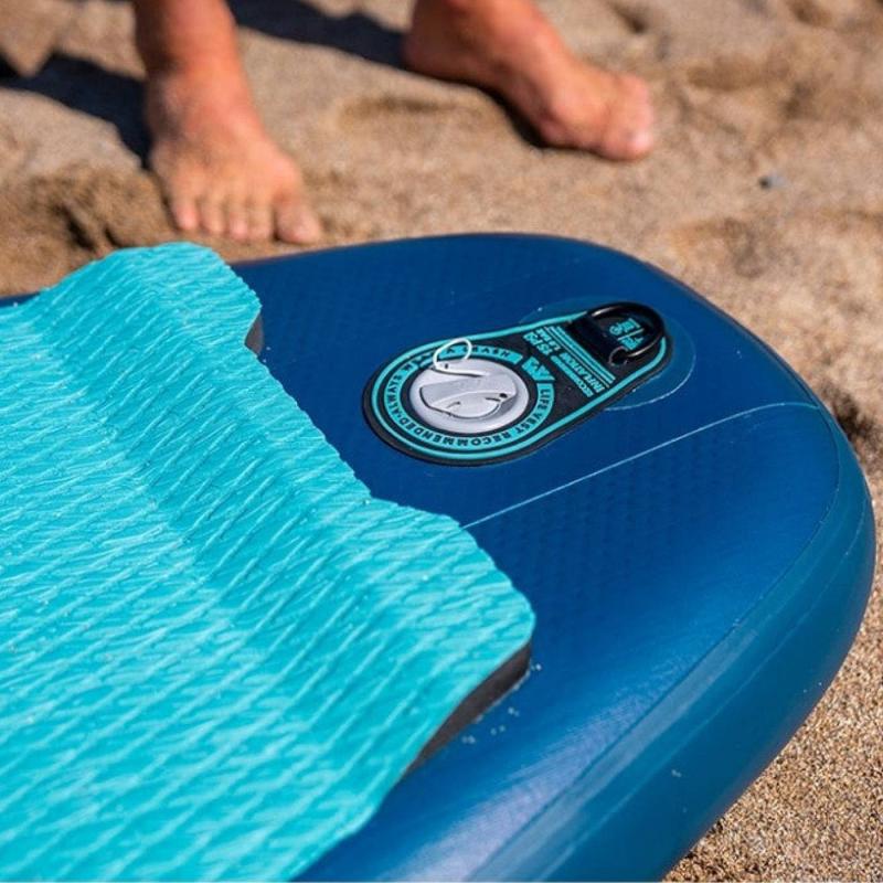 SUP na vodu disponuje rýhovací nášlapnou podložkou ve tvaru malých diamantů dodávající komfort při vaší jízdě. Pojistné lanko v nerezovém kroužku zajišťuje bezpečnost během pádlování.