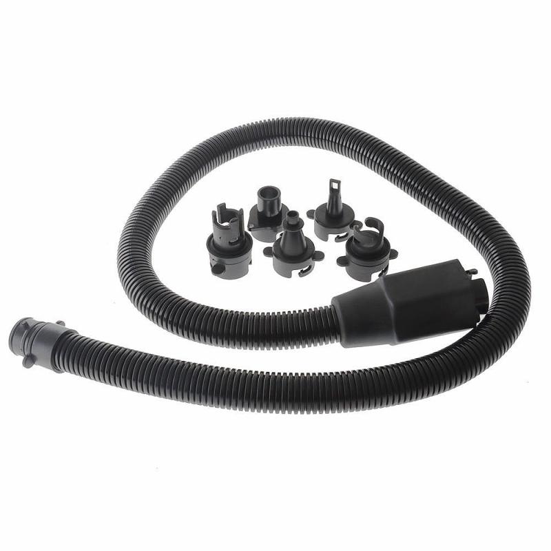 Její výkon 70 l/min umožňuje rychlé plnění vzduchem, zatímco dva závitové ventily usnadňují připojení hadice jak pro nafukování, tak pro vyfukování. Černá dlouhá hadice poskytuje pohodlnou manipulaci i při umístění pumpy na zemi, což zvyšuje komfort používání.