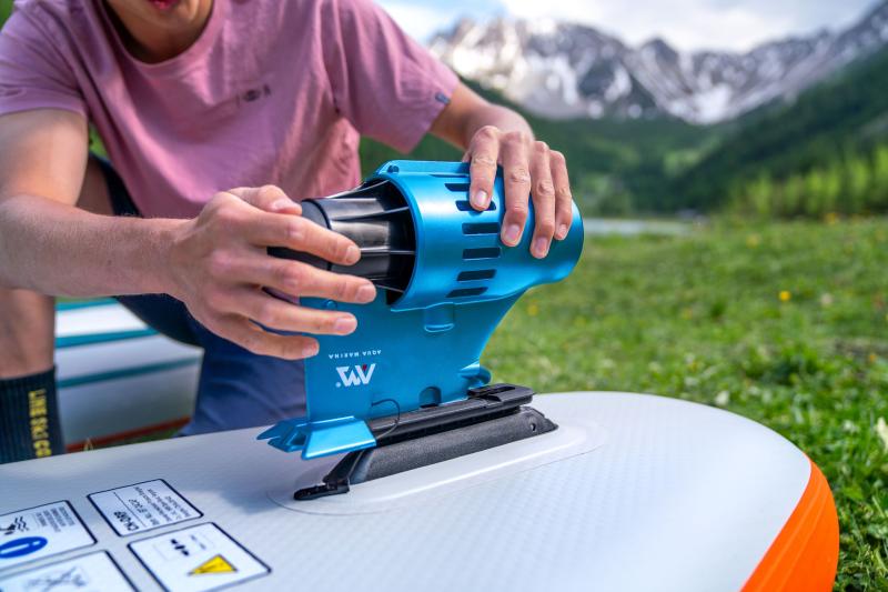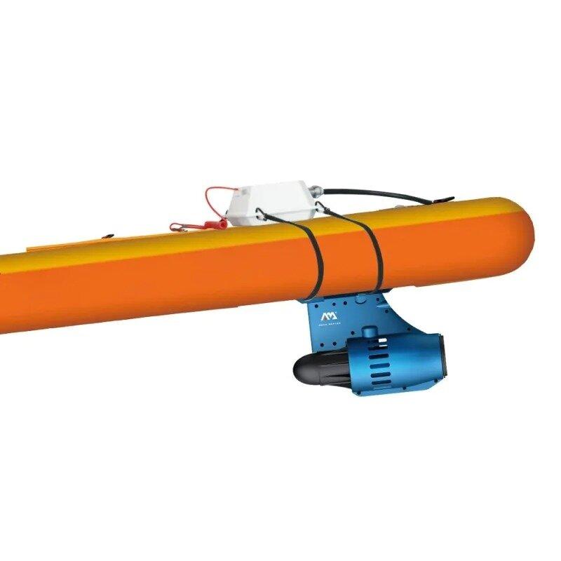 Součástí je patentovaný přídavný motor AQUA MARINA Blue Drive S Power Fin, který se snadno nasadí místo zadní ploutve. Motor má výkon 240 W a je napájen 12V baterií s kapacitou 8,8 Ah, která vydrží v provozu 30 až 60 minut v závislosti na zatížení a rychlosti. Pro ovládání slouží bezdrátový voděodolný dálkový ovladač v pouzdře, které lze připevnit na ruku, takže máte ovládání vždy po ruce.