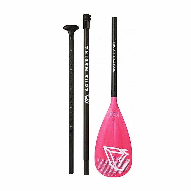 Praktické skládací pádlo na cesty. Aqua Marina SPORT III nyní v růžové CORAL barvě. Atraktivní moderní skládací ALU pádlo na vodu. Hliníkové pádlo na paddleboard má univerzální využití.Pádlo na vodu se skládá ze 3 dílů, díky tomu jej snadno demontujete a sbalíte do kufru či tašky. Nízká hmotnost 1020 g a průměr žerdi 29 mm zaručují komfortní používání i transport.