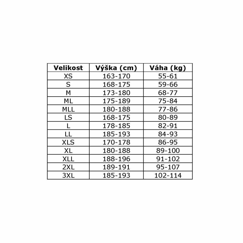 | Tabulka velikostí: | |
