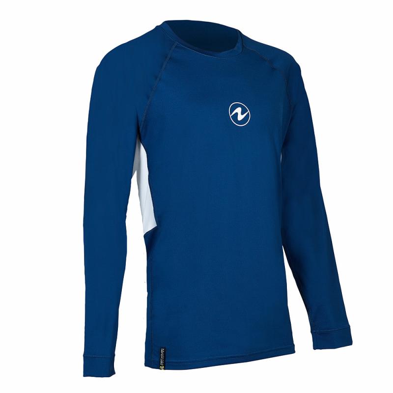 Aqualung Pánské lycrové triko Aqua Lung LOOSE FIT modrá/bílá dlouhý rukáv