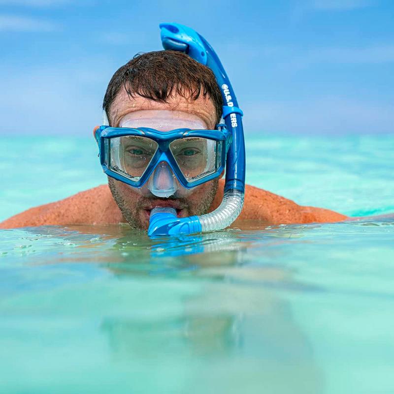 Šnorchl s výdechovým ventilem a horním vlnolamem disponuje silikonovým náustkem eliminující únavu čelisti. Ve vlnolamu je plovák, který zabraňuje vniku vody při zanoření hlavy, díky tomu je suchý. Pro šnorchlování nejpohodlnější varianta.