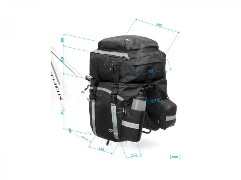 Popruhy po obvodu brašen umožňují připevnění dalších doplňků, jako jsou stan, spacák nebo karimatka, což z brašny činí ideální volbu pro jednodenní výlety i vícedenní expediční cykloturistiku. Brašna se snadno a pevně upevňuje na nosič, přičemž je kompatibilní s nosiči AUTHOR ACR-16 a ACR-12.