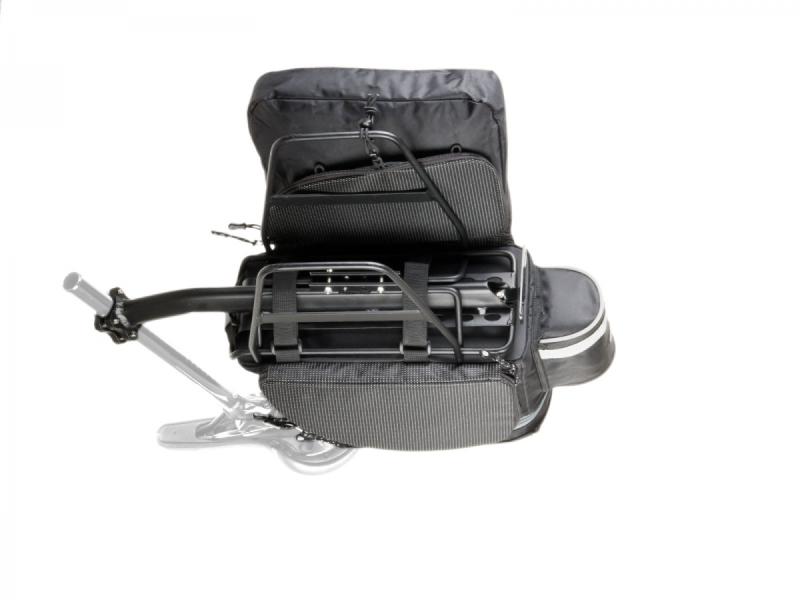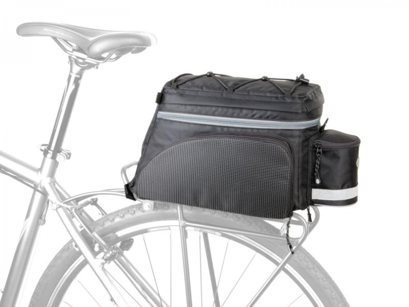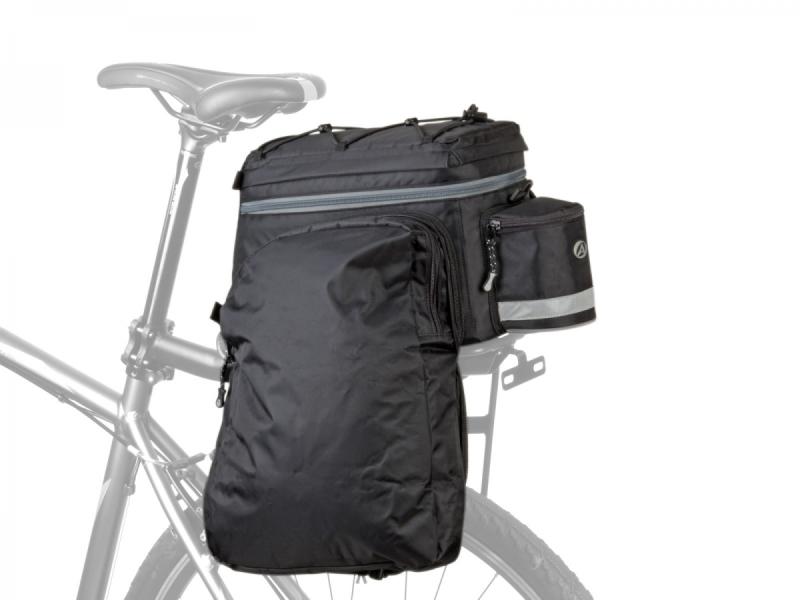 Brašna s nastavitelným objemem 15–20 l, voděodolným povlakem a reflexními doplňky, vhodná pro různé nosiče s praktickým ramenním popruhem.Tato brašna nabízí praktické řešení pro přepravu věcí na kole díky pevné konstrukci s polstrovanými stěnami a dnem, která spolehlivě ochrání obsah před nárazy. Hlavní kapsu a dvě postranní kapsy lze snadno přizpůsobit podle potřeby, což umožňuje efektivní využití prostoru s objemem od 15 do 20 litrů.