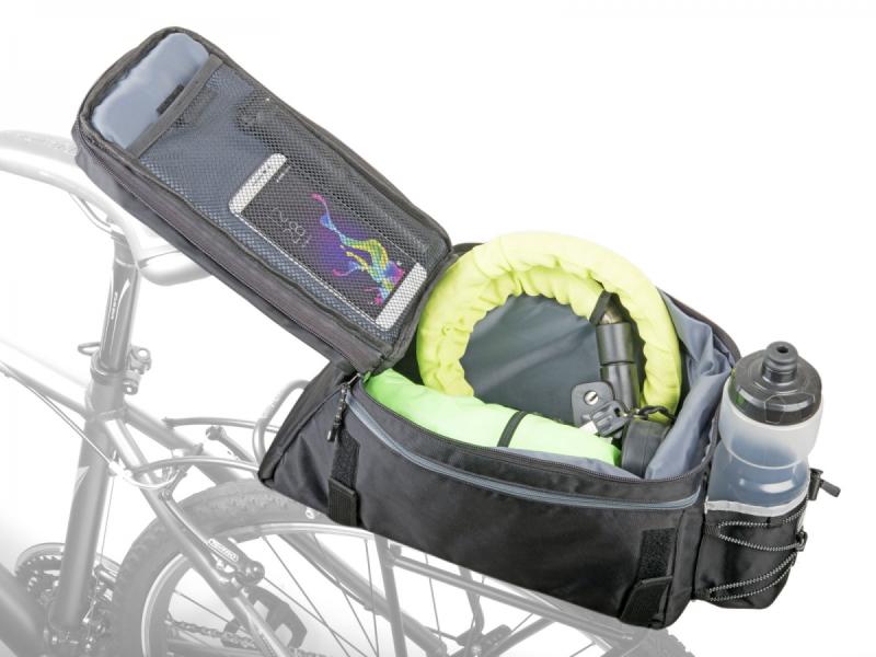 Polstrovaná taška s nastaviteľným objemom 9–14 l, vodeodolným povlakom a reflexnými prvkami, vhodná pre rôzne nosiče bicyklov.Táto taška ponúka praktické riešenie pre bezpečné a pohodlné prenášanie vecí na bicykli. Vďaka polstrovaným stenám a dnu je obsah dobre chránený pred nárazmi a poškodením. Hlavnú kapsu je možné jednoducho upraviť podľa potreby, a to od objemu 9 do 14 litrov, čo umožňuje flexibilné využitie pri rôznych príležitostiach.