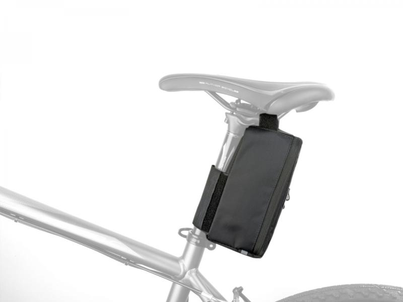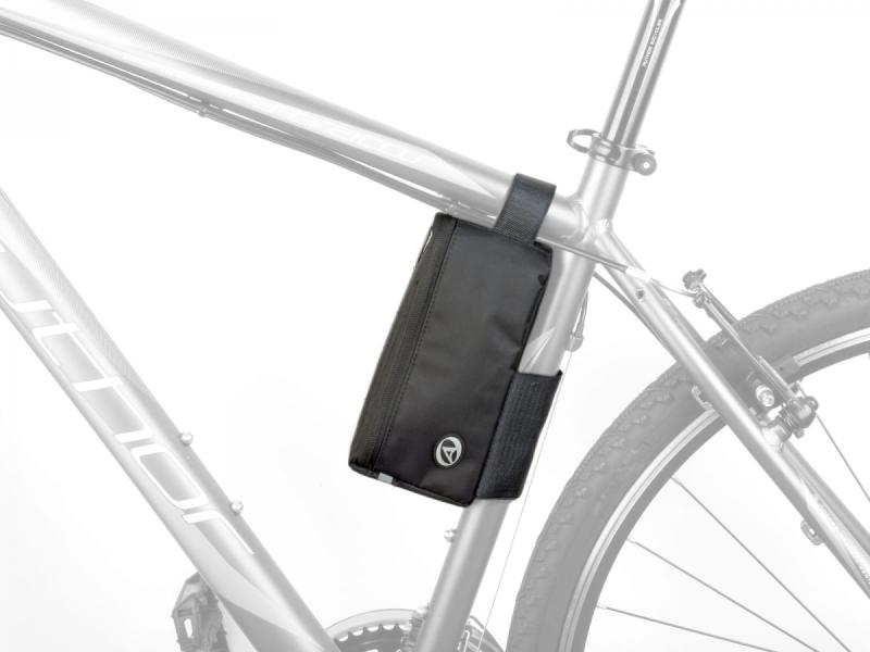 - Hlavný upínací popruh je opatrený suchým zipsom a vnútorným silikónovým potlačou, vďaka čomu taška pevne drží na ráme a nešmýka sa.