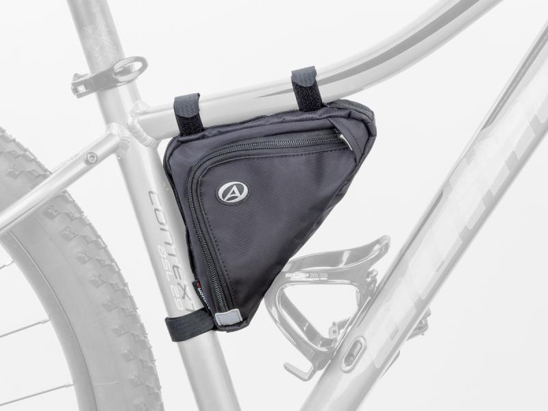 Taška do rámu Author A-R269 je navrhnutá tak, aby ponúkala praktické a spoľahlivé riešenie pre uloženie drobností počas jazdy na bicykli. Disponuje jednou hlavnou kapsou a samostatnou plochou kapsou na zips, čo umožňuje prehľadné usporiadanie vecí. Vďaka jednoduchému a pevnému uchyteniu pomocou suchého zipsu sa ľahko pripína na hornú rámovú trubku, pričom jej veľkosť a tvar zodpovedajú rámom AUTHOR ASL.