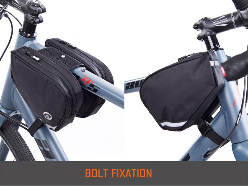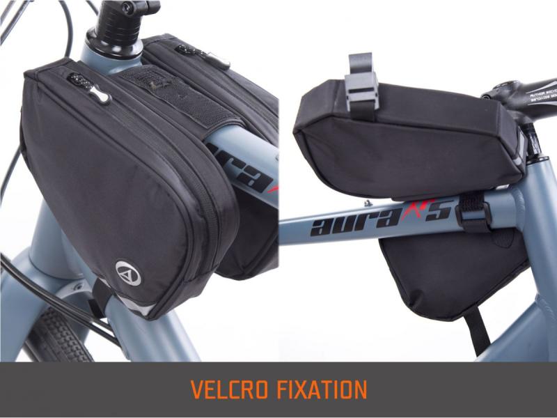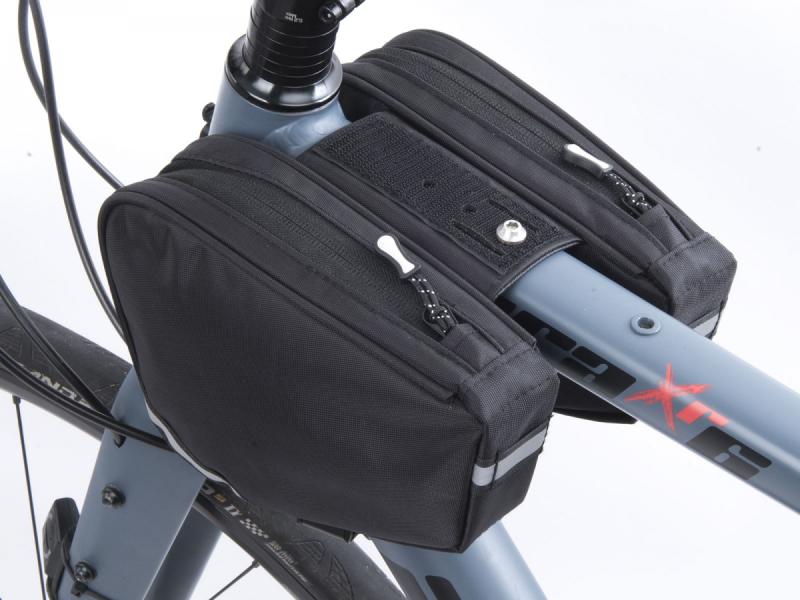 Uchycení brašny je možné pomocí suchého zipu nebo šroubu M5 do závitové vložky, což umožňuje pevné a spolehlivé připevnění na rám kola. Rozměry brašny jsou 200 × 140 × 40 mm, objem jedné brašny činí 0,6 l, celkový objem při použití obou brašen je 1,2 l.