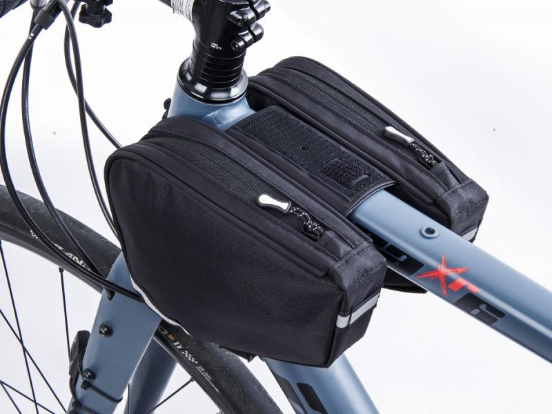 Kompaktní brašna na rám kola s voděodolným materiálem a snadným přístupem jednou rukou, ideální pro uložení telefonu, nářadí či drobností během jízdy.