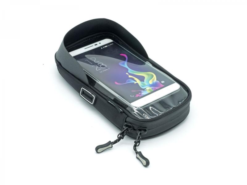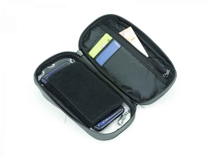 Brašna je vybavena snadno odnímatelnou kapsou na mobilní telefon s vnitřními rozměry 185 × 90 mm, která umožňuje bezpečné uložení a rychlý přístup. Zipy lze otevřít jednou rukou, což oceníte zejména během jízdy. Spodní část brašny je opatřena pryžovou nášivkou, která zajišťuje stabilitu na rámu a chrání horní rámovou trubku před poškozením.
