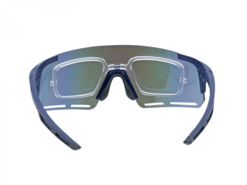 Lehké a pružné brýle s modrými zrcadlovými čočkami, integrovaným dioptrickým klipem a protiskluzovou úpravou pro stabilní nošení při sportu. zobrazit celý popis