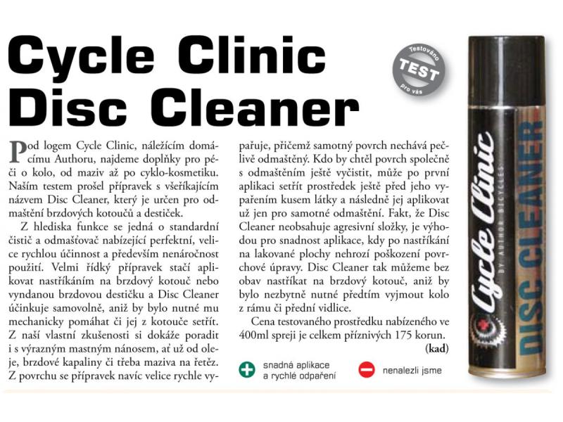 Cycle Clinic Disc Cleaner je specializovaný čistič navržený pro efektivní odstranění prachu, mastnoty a dalších nečistot z brzdových kotoučů jízdních kol. Díky rychlému odpařování nezanechává žádné zbytky, což pomáhá zachovat optimální funkci brzd a zvyšuje jejich účinnost.