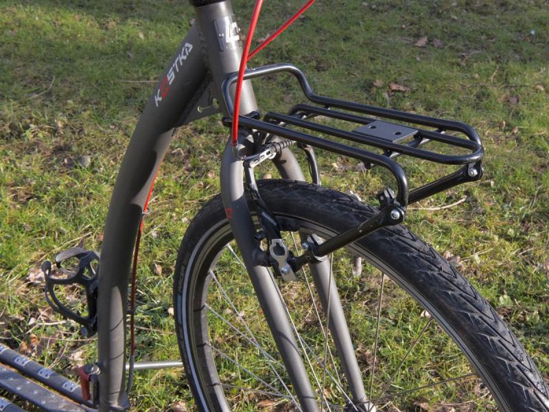 Ľahký držiak tašky z hliníkovej zliatiny s nosnosťou 5 kg a nastaviteľným uchytením pre bezpečné upevnenie na bicykel. Zobrazit celý popis