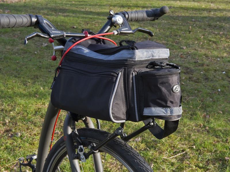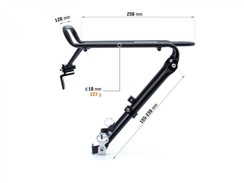 Uchytenie je plne nastaviteľné, takže držiak ľahko prispôsobíte rôznym typom tašiek a rámov bicyklov. Nosná plocha má rozmery 120 x 250 mm, čo poskytuje dostatok priestoru pre upevnenie tašky rôznych veľkostí.