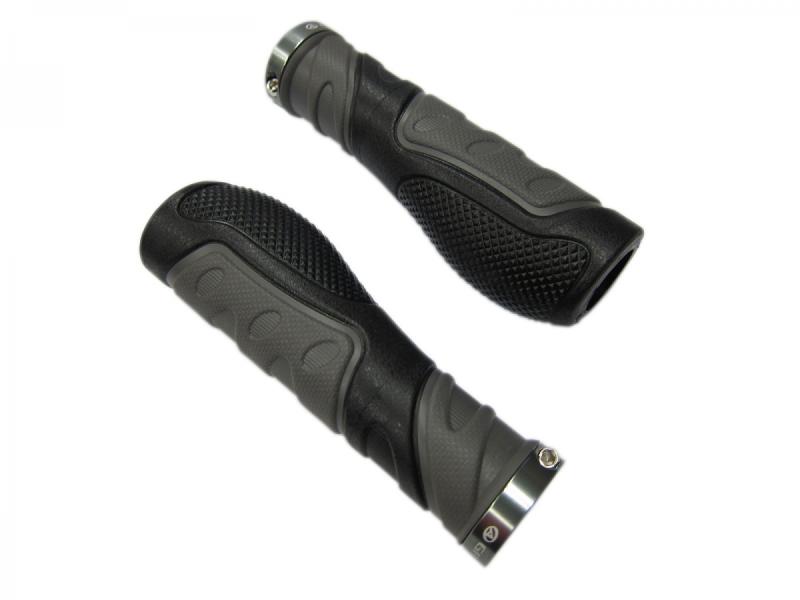 Ergonomický grip nabízí pohodlný úchop díky své ergonomicky tvarované konstrukci a použití dvouvrstvé pryže, která zajišťuje příjemný kontakt s rukou a lepší tlumení vibrací při jízdě.
