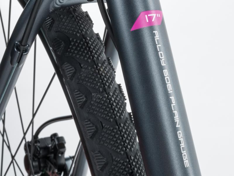 Tento model ponúka vyváženosť medzi výkonom a dostupnosťou, vhodný pre začiatočníčky i skúsené cyklistky, ktoré hľadajú spoľahlivé kolo pre jazdu po meste i ľahší terén. Vďaka hydraulickým brzdám a uzamykateľnej vidlici zvládnete rôzne povrchy s istotou a pohodlím. Úzke plášte s jemným vzorom prispievajú k efektívnej jazde na asfalte, zatiaľ čo odolné komponenty zaručujú dlhú životnosť.