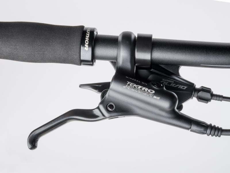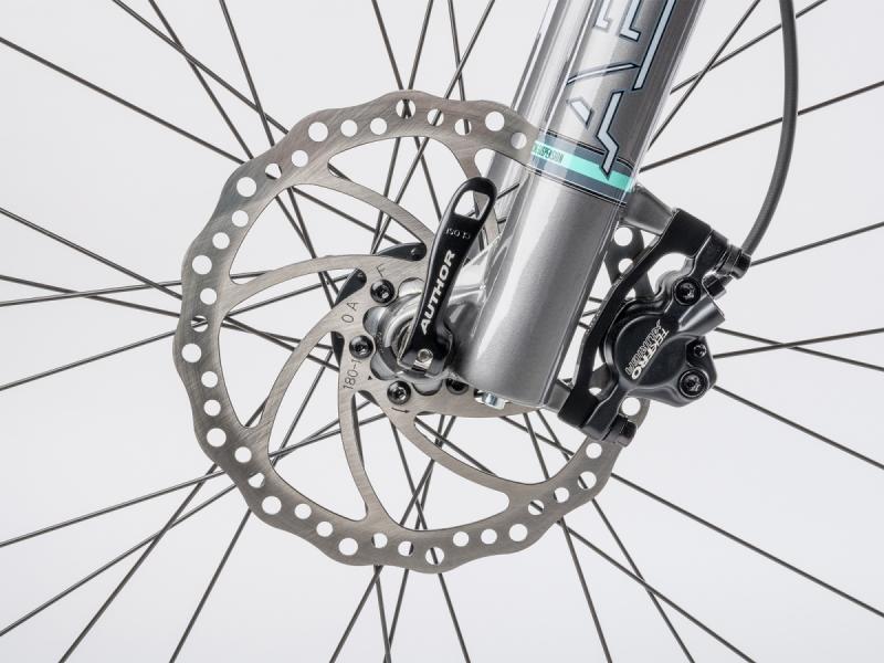 Prevodovú sústavu zabezpečuje sada Shimano Alivio s 18 rýchlosťami (2 × 9), ktorá je známa svojou odolnosťou a spoľahlivosťou pri zmene rýchlostí. Hydraulické kotúčové brzdy Tektro HD-M280 poskytujú dostatočnú brzdnú silu za rôznych podmienok a zvyšujú bezpečnosť jazdy. Kolesá sú osadené ráfikmi Author Xenon a kvalitnými plášťami Vittoria Barzo, ktoré zabezpečujú dobrý záber aj v náročnejšom teréne.