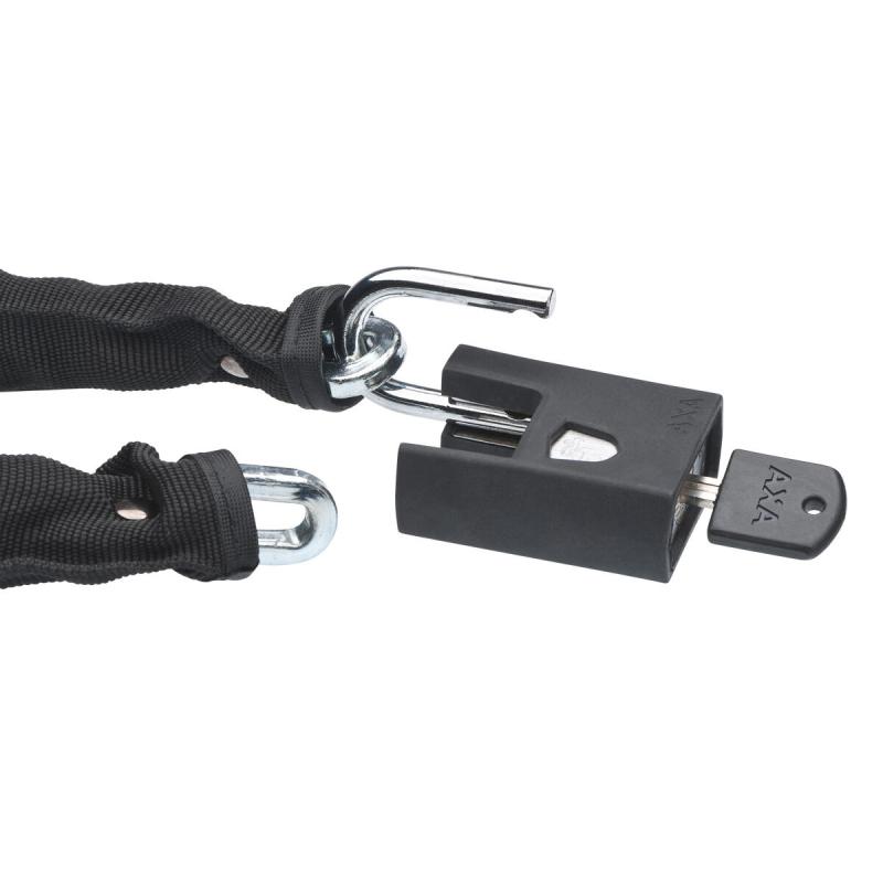 Kvalitný reťazový zámok navrhnutý pre krátkodobé alebo strednodobé parkovanie bicykla. Pogumovaný zámok je oddeliteľný od reťaze. Dĺžka reťaze je 85 cm, zatiaľ čo jeho priemer činí 6 mm. Reťaz je vyrobená z tvrdenej ocele a je uložená v odolnom polyesterovom obale.Bezpečnosť