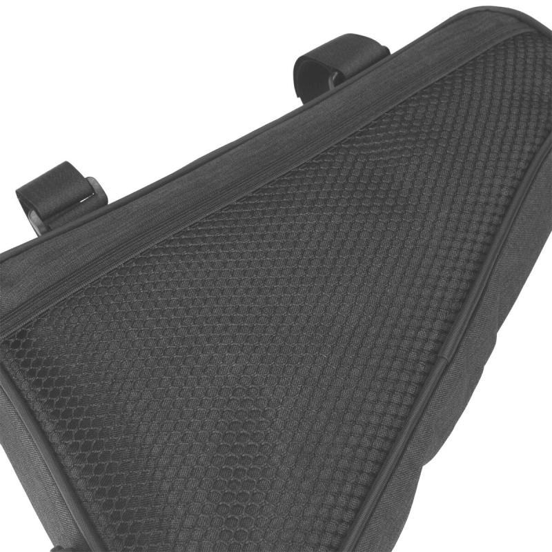 Brašna Triangle 2.0 tak poskytuje místo nejen pro klíče, peněženku a mobil, ale i pro cyklistické rukavice nebo základní nářadí pro případnou opravu. Svým tvarem brašna minimalizuje odpor vzduchu a nepřekáží nohám při šlapání. Triangle 2.0 brašna je zhotovená z pevného polyesterového plátna s vnitřním PU zátěrem, který ochrání obsah tašky před promočením i při nenadálé prudké bouřce.