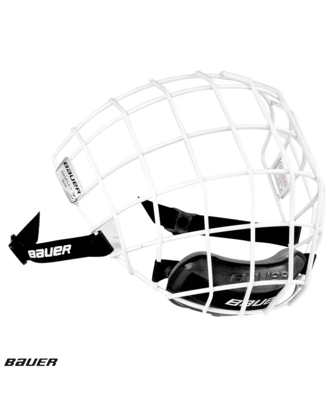 Chránič brady je vyroben ze speciální pěny dvojí hustoty, je pohyblivý, trvanlivý a přináší hráči maximální pohodlí. Drobná perforace zajišťuje dokonalou prodyšnost. Mřížka Bauer Profile II je koš vhodný pro všechny helmy Bauer.