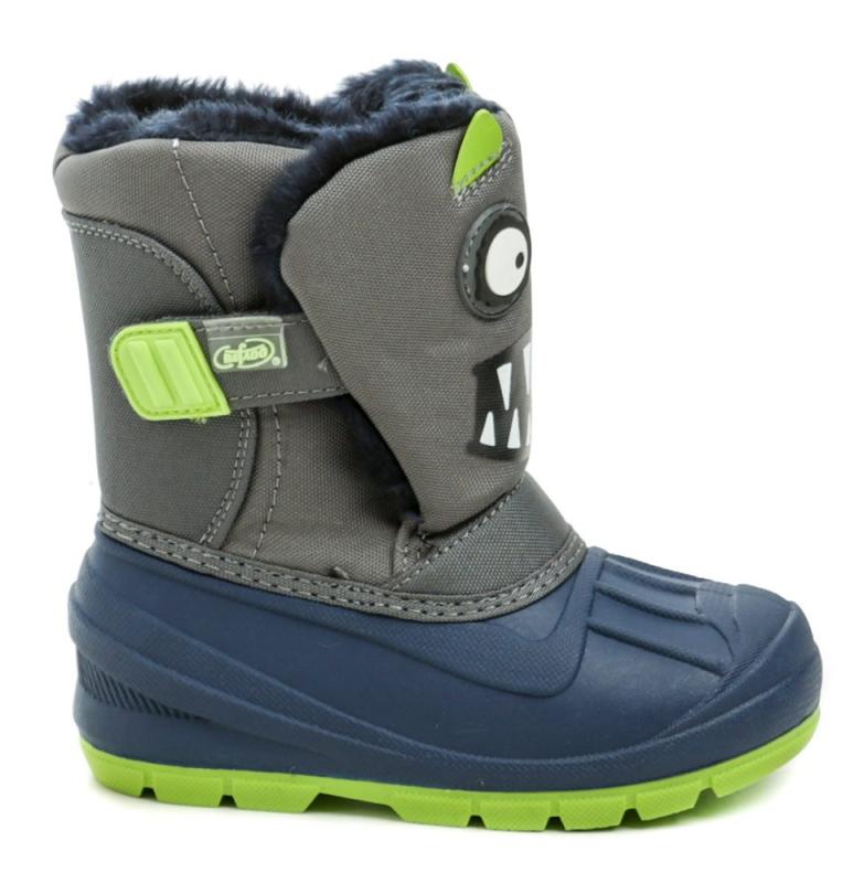 Detská zimná vychádzková a rekreačná vodeodolná obuv so zapínaním na suchý zips. Snehule Befado pre voľnočasové využitie.