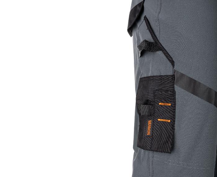 Strečové pracovní kalhoty nabízejí vyvážený poměr komfortu, funkčnosti a odolnosti, což oceníte při každodenní práci. Materiál z 91 % nylonu a 9 % spandexu zajišťuje volnost pohybu a přizpůsobení se různým pracovním pozicím bez omezení. Pro zvýšení odolnosti jsou namáhané části zesílené kontrastním materiálem z povrchově upraveného 300D Oxfordu, který chrání před rychlým opotřebením.