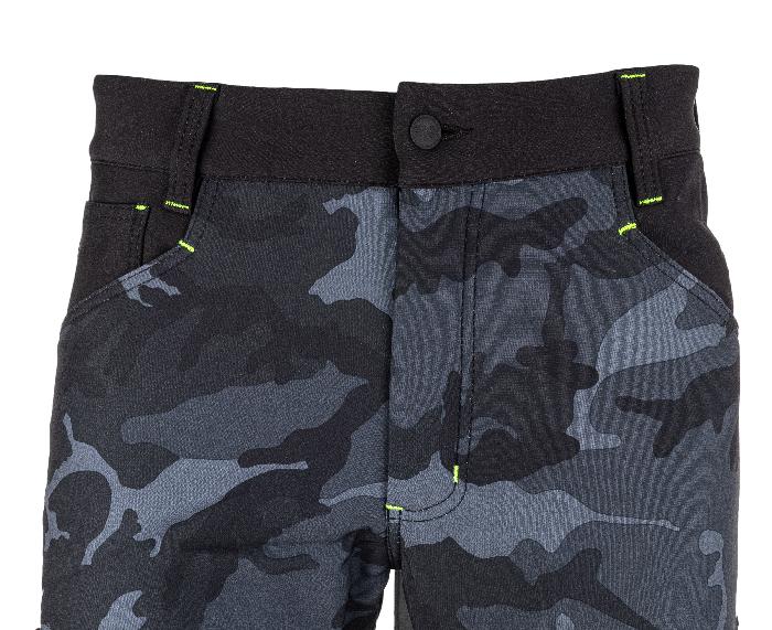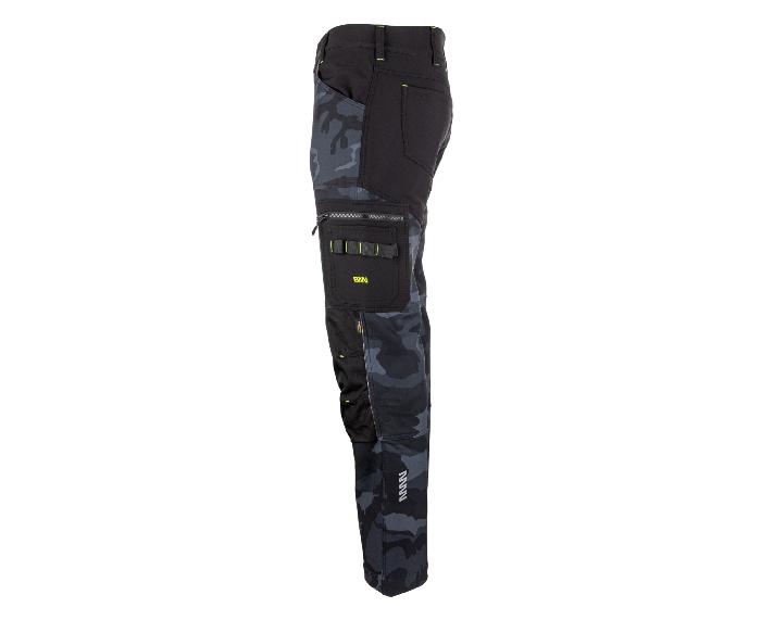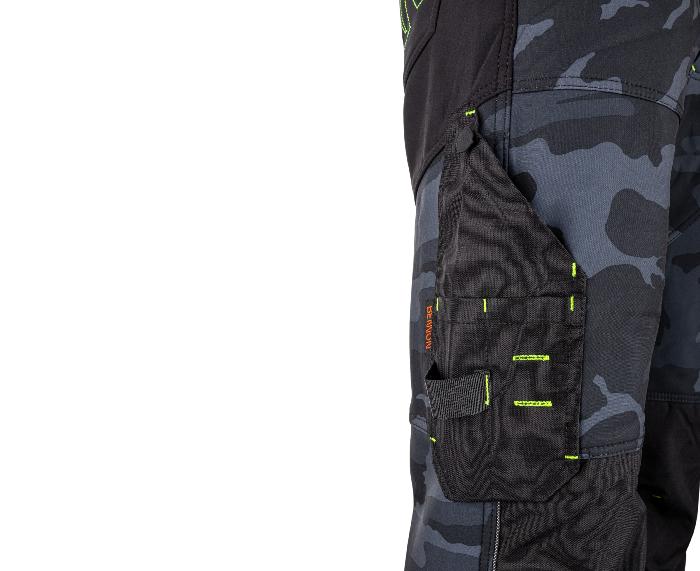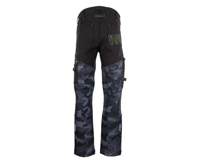 Pružné softshellové kalhoty s maskáčovým vzorem, vodě i větru odolné, s pevnými koleny a kapsami pro nářadí vhodné do chladnějšího prostředí.Tyto softshellové kalhoty jsou navrženy pro pohodlnou a efektivní práci v chladnějších venkovních podmínkách, kde oceníte jejich funkční vlastnosti a odolnost.