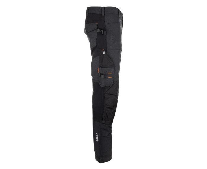 Kalhoty jsou vybaveny poutkem na zavěšení nářadí, kapsou na kolenní vycpávky pro lepší ochranu a komfort při práci v kleče a možností nastavení délky nohavic, což umožňuje přizpůsobení podle potřeby.
