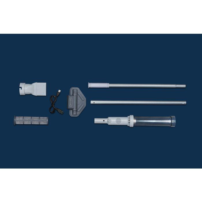 Vysávač disponuje otočnou sacou hlavou vybavenou kolieskami a kefami, ktoré uľahčujú zber nečistôt z rôznych povrchov. Nečistoty sa zhromažďujú v ľahko prístupnej filtračnej nádobe o objeme 0,54 l, ktorú je možné jednoducho vyprázdniť. Pre pohodlnú prácu je súčasťou dvojdielna nastaviteľná tyč dĺžky 1,55 m, ktorá umožňuje dosiahnuť aj do hĺbky bazéna.