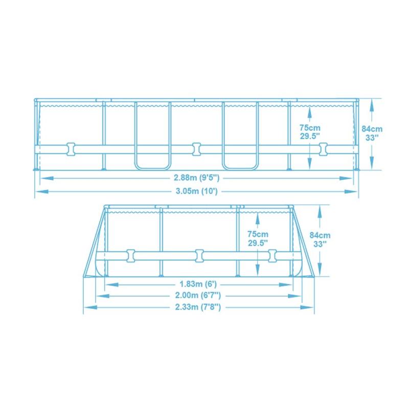 Nadzemní bazén určený pro povrchovou montáž je vyroben z odolného trojvrstvého PVC materiálu Tritech™, který zajišťuje dlouhou životnost a pevnost konstrukce. Má stabilní dno a zesílenou kovovou konstrukci POWER STEEL, která umožňuje rychlou a jednoduchou montáž bez speciálních nástrojů. Stačí sestavit rám a napustit vodou, což usnadňuje přípravu bazénu k použití. Díky pružné a pevné konstrukci je bazén vhodný především pro rodiny s dětmi, které ocení bezpečný a stabilní prostor pro koupání.