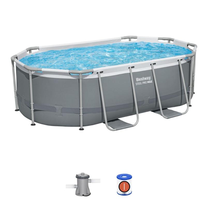 Nadzemní oválný bazén s pevnou kovovou konstrukcí a kartušovou filtrací 1249 l/hod pro snadnou údržbu a rodinnou zábavu. Zobrazit celý popis