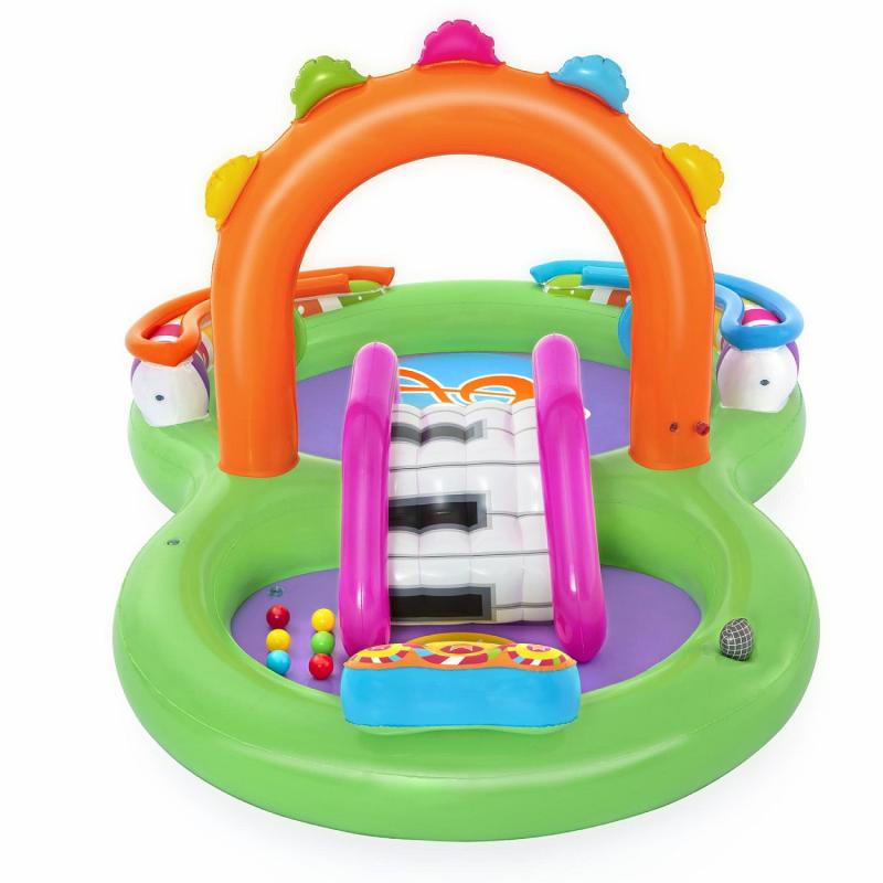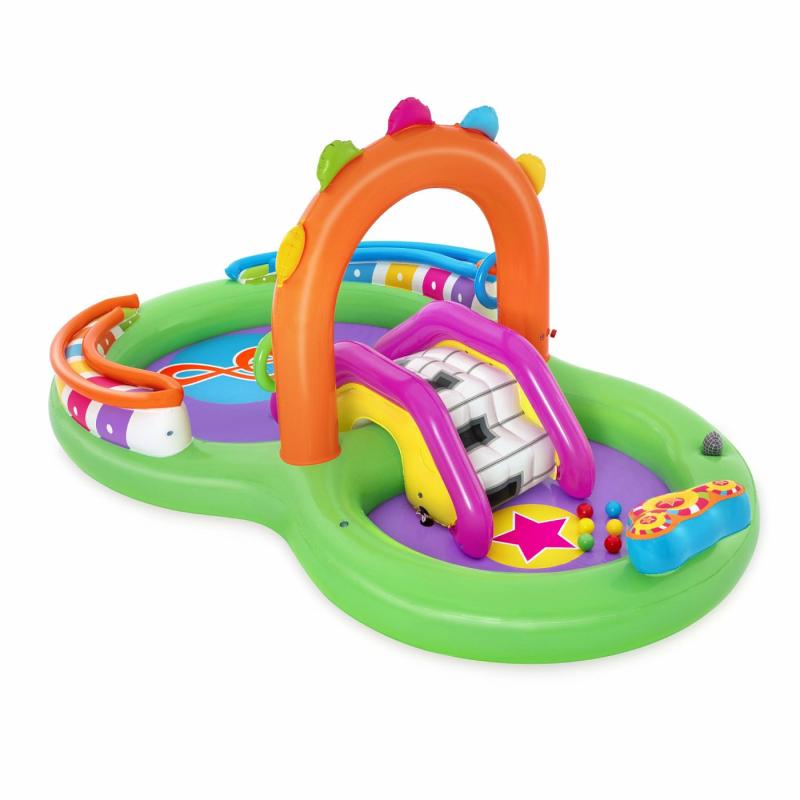 • Vodní dětské centrum s motivem hudby zajistí dětem osvěžení v letních parných dnech a zároveň je učí jemné motorice. Dětský nafukovací bazének na zahradu můžete využít i jako suché hrací centrum do obýváku či do pokojíčku.