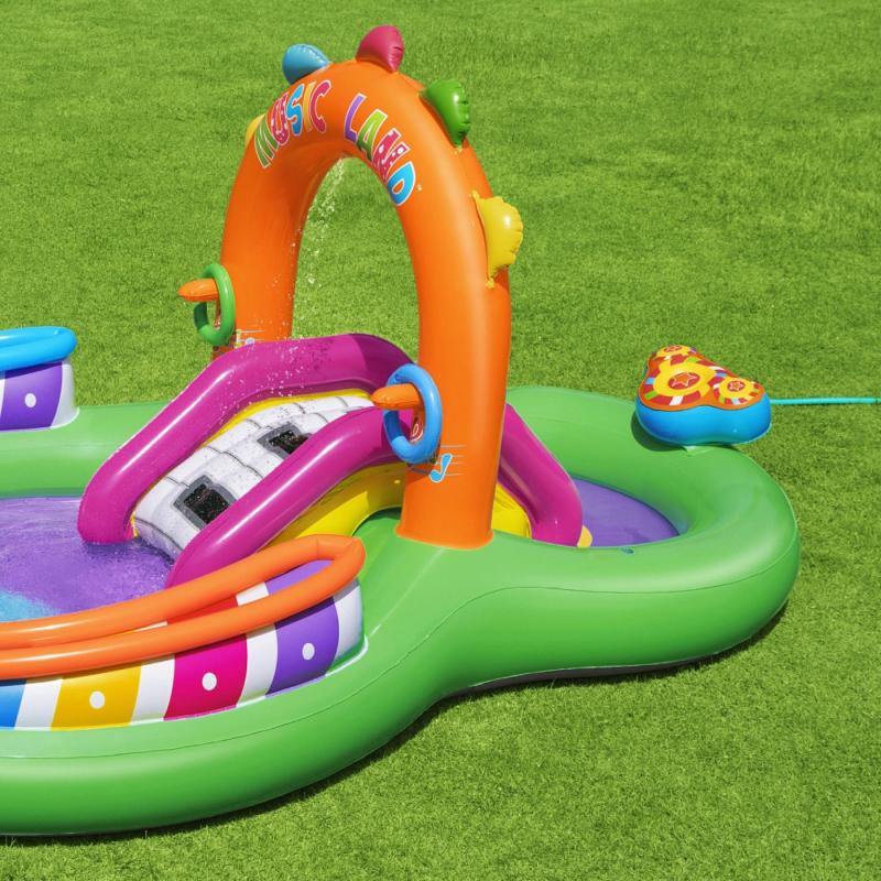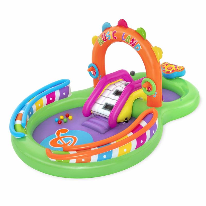 • Vodné detské centrum s motívom hudby zabezpečí deťom osvieženie v letných horúcich dňoch a zároveň ich učí jemnej motorike. Detský nafukovací bazénik do záhrady môžete využiť aj ako suché hracie centrum do obývačky či do izbičky.