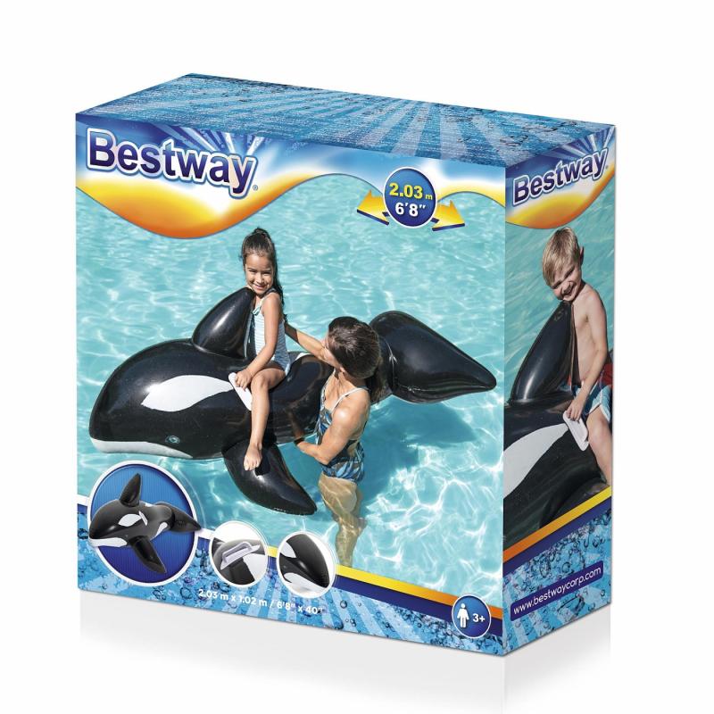 Bestway přináší nafukovací velrybu. Nafukovací velryba do vody pro děti je kvalitní vinylové lehátko pro děti o rozměrech 203 x 102 cm. Nosnost nafukovacího lehátka na vodu je 45 kg.Nafukovací velryba Bestway je vhodná pro děti od 3 let věku. Originální 3D design nafukovací dětského lehátka do vody po vzoru velkolepého mořského živočicha. Černá velryba je vhodná do bazénu, na jezero či na dovolenou k moři.