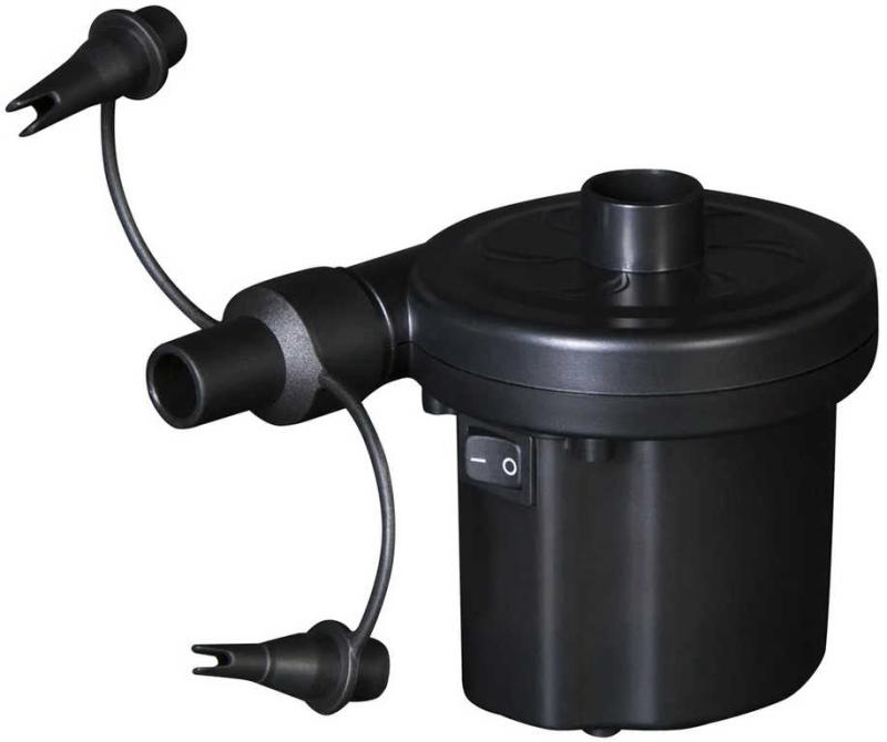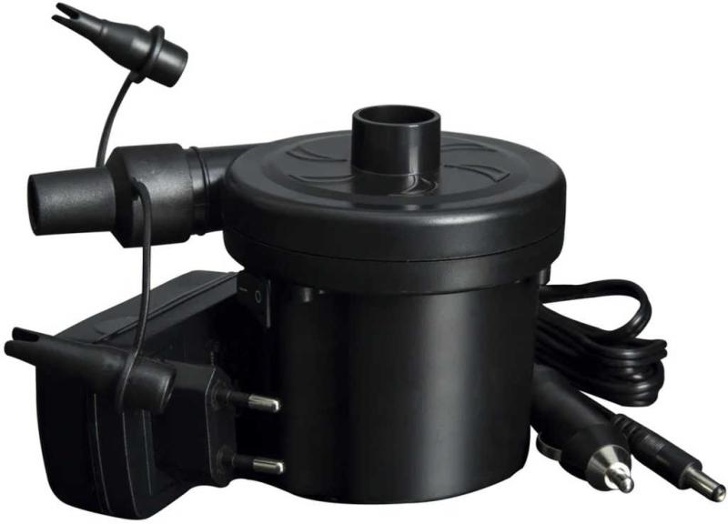 Elektrická pumpa 12 V +230 V univerzálne použitie na zásuvku v aute či auto zapaľovač a alebo cez adaptér je možné napájanie 230V zo siete. Pumpa je vhodná na použitie pri kempovaní i na domáce použitie. Výkon je dostatočný na nafukovanie väčších výrobkov - rekreačných člnov do 3 m dĺžky, rodinných lehátok, záhradných bazénov, nafukovacích lôžok atď.Rozmery balenia (š v h): 44 x 26 x 22,5cm