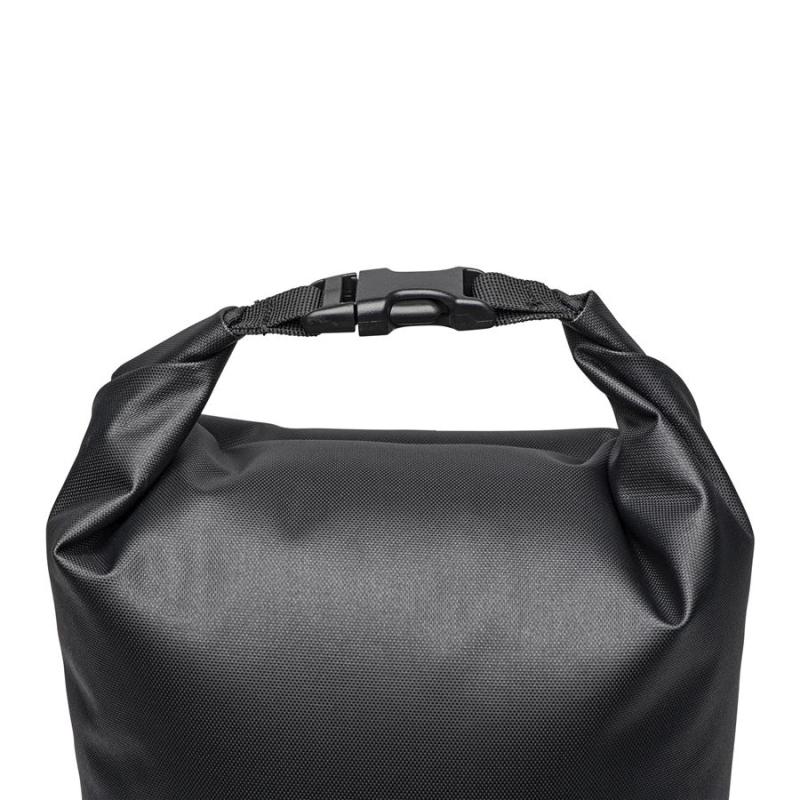 Konštrukcia s rolovacím zatváraním zaisťuje jednoduché a bezpečné zatvorenie, zároveň umožňuje nastaviť veľkosť podľa množstva nákladu. Rovný a pevný spodný diel pomáha udržať tašku vo vzpriamenej pozícii, čo uľahčuje balenie a prístup k veciam vo vnútri.