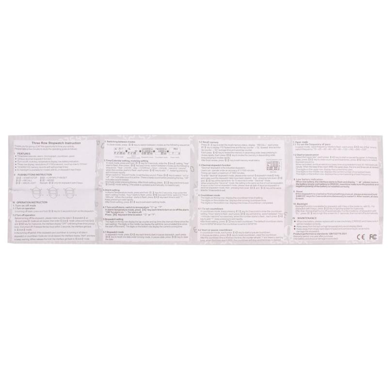Zariadenie ponúka trojriadkový displej s rozlíšením 1/100 sekundy, čo umožňuje veľmi presné meranie až do maximálnej dĺžky 10 hodín. Medzi praktické funkcie patrí zobrazenie času, dátumu, budíka a chronografu, rovnako ako odpočítavanie. Stopky tiež disponujú funkciou desatinných stôpok, čo zvyšuje ich presnosť a použiteľnosť pri rôznych typoch tréningov.