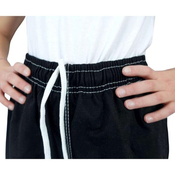 Nohavice kimona sú vyrobené z ľahkého materiálu a sú opatrené pružným pásom doplneným o šnúrku, takže sa dokonale prispôsobia každej postave a pri cvičení nesklzávajú dole. Nohavice sú zosilnené v oblasti rozkroku a kolien, aby bola zabezpečená ich maximálna odolnosť.