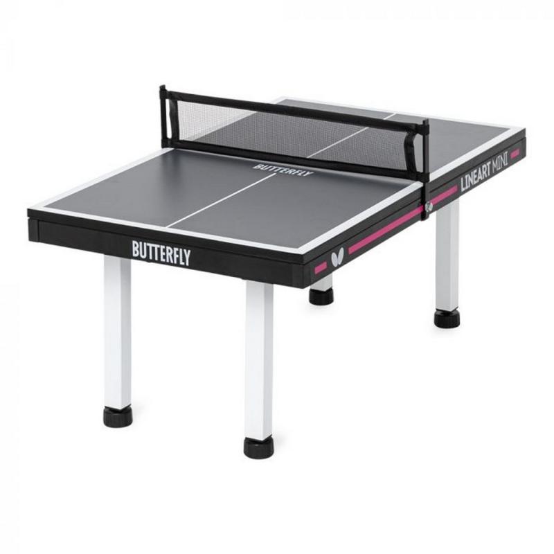 Kompaktní stůl na stolní tenis s pevnou 12mm deskou a ocelovým rámem, ideální pro omezený prostor a rychlé rozložení.Stůl Butterfly Mini Lineart představuje praktické řešení pro hraní stolního tenisu v místech s omezeným prostorem. Díky svým kompaktním rozměrům a nízké hmotnosti je snadno přenosný a rychle připravený k použití. Stačí jednoduše rozevřít nohy a můžete začít hrát.